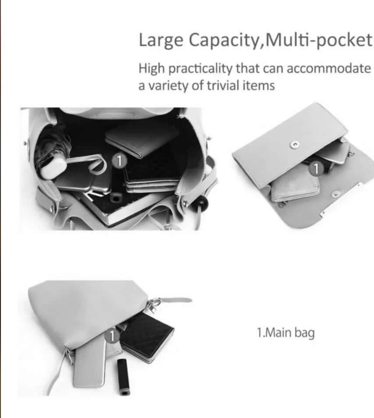 - 3-Piece Set: Includes main handbag, inner pouch, and clutch.
